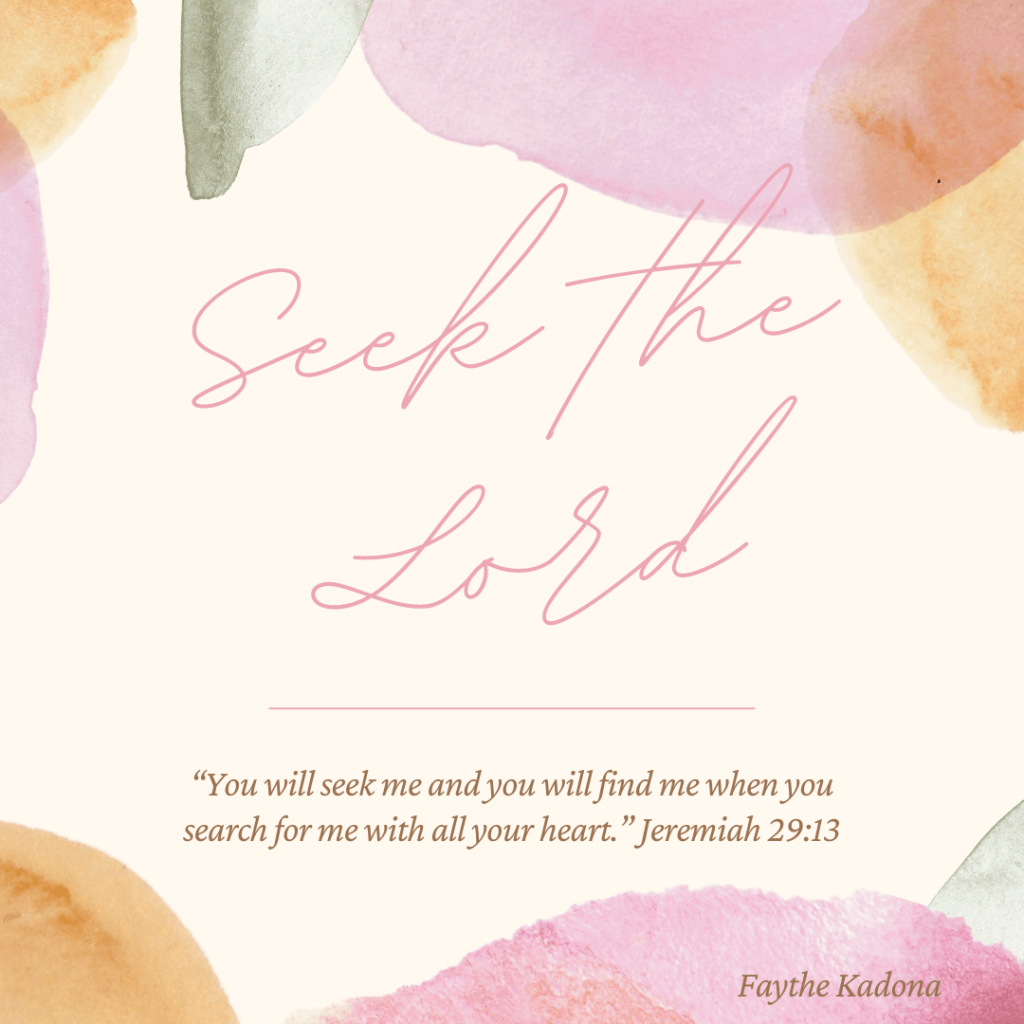 Jeremiah 29:13 says “You will seek me and find me when you search for me with all your heart.”