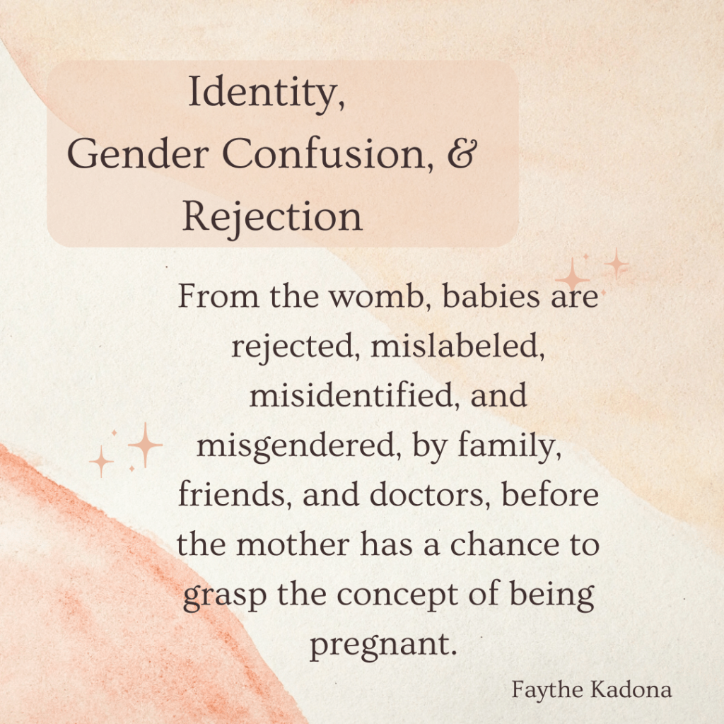 You see, from the womb, babies are rejected, mislabeled, misidentified, and misgendered, by family, friends and doctors, before the mother has a chance to grasp the concept of being pregnant. Pregnancy is the most beautiful gift God bestows upon a woman. People don’t realize that what they say quickens in the womb of a growing child. Babies can hear when their ears develop in the womb, so what you say to a pregnant woman matters.