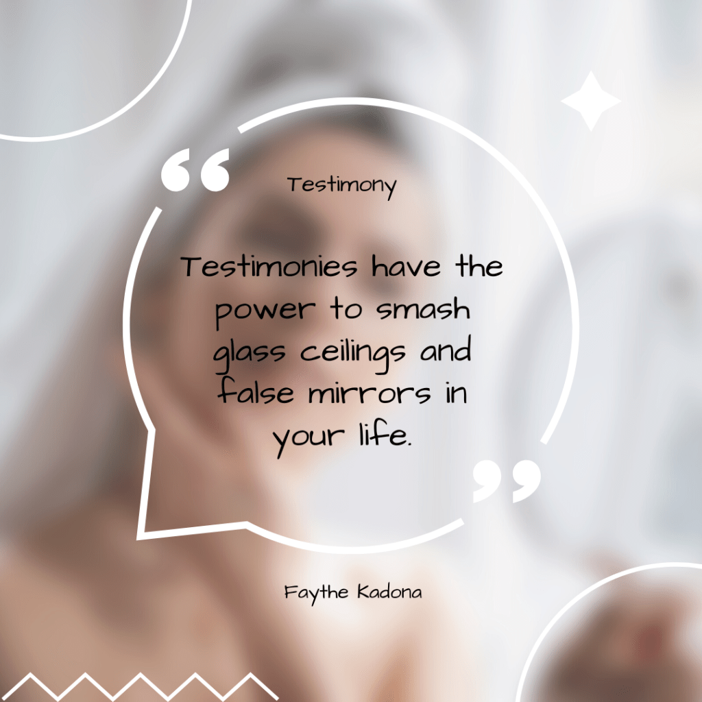 Testimony has power. Just the word alone carries weight to it. Some use it to reference what is given in the court of law, as a “formal written or spoken statement (dictionary.com)”. This can be your own recall of events that happen when you use testimony against or in defense of yourself or someone else. Another use of testimony is when is recounts an experience or conversion, publicly, especially a religious one (dictionary.com). Testimonies also is defined as “the precepts of God” and “open declaration or profession of faith” (dictionary.com). Interestingly, these are all linked together and powerful on their own or collectively combined.