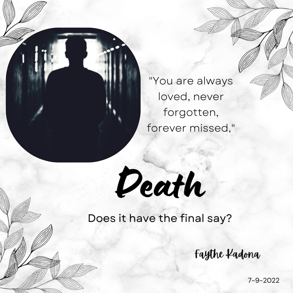 So, does death have the final say? Absolutely not! Death may be final in the land of the living for the person who has passed. For the people who are still living, it is no the final say. That is up to you. If you stop living and let grief consume you and completely stop living – that is death having the final say in your life. You process grief. You go through the stages of grief. You allow the Holy Spirit to come into those places where a void was left – ALL OF THEM. You can’t get back lost time. You can’t control time. What you can do, is live. You can live and not let your life be wasted and consumed by death. The pain in your heart will take time to heal. That is a part of the process of healing. Let it heal. Be reconciled back to Jesus and allow your heart to mend. Don’t let the wound stay open. Death never has the final say!
